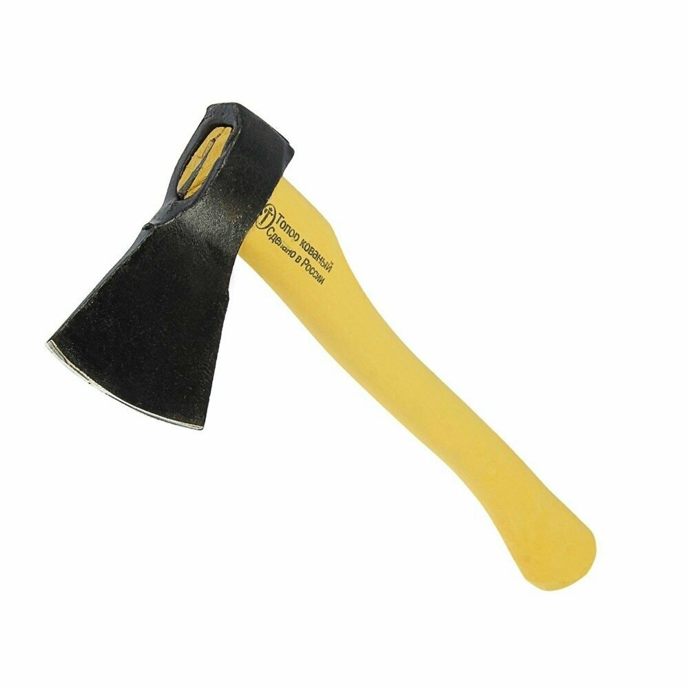 Кованый топор Труд 21684, 600/850 г, в сборе с деревянным топорищем 350 мм, А-О, — это удобный небольшой инструмент, который будет полезен в хозяйстве. Он используется для работ с древесиной: рубки веток, тесания, заготовки деталей и т.д.ПреимуществаКачественное исполнение полотна позволяет использовать его с высокими нагрузками: оно выполнено из стали 60Г и прошло зонную закалку до твердости 50 HRC.Рабочая часть выполнена из цельнометаллической заготовки методом ковки, за счет чего достигается высокая прочность и исключается появление сколов и трещин.Лакокрасочное покрытие защищает полотно от коррозии и механических повреждений.Для надежной фиксации головы на топорище в месте всада предусмотрен клин.Топорище изготовлено из древесины, отшлифовано, покрыто защитной пленкой и шпатлевкой.Небольшая длина рукоятки 350 мм и малый вес топора 850 г позволяют транспортировать его в рюкзаке или небольшой переноске, что удобно в походе.