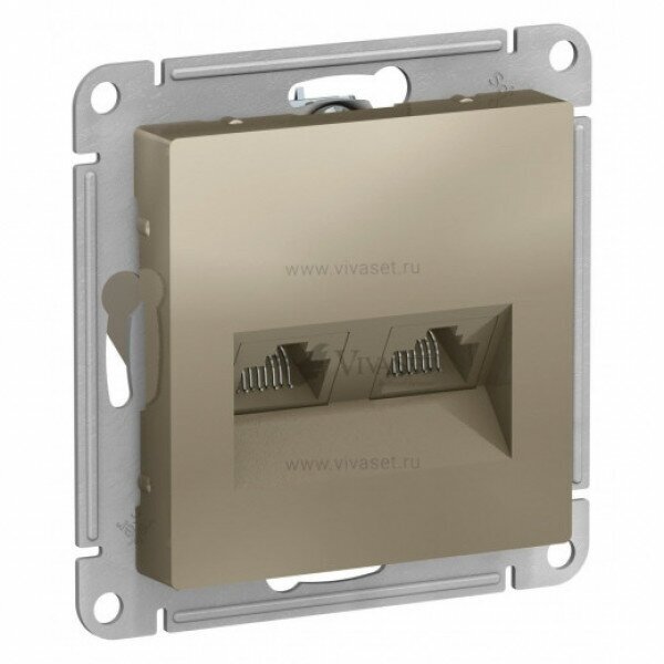 AtlasDesign ATN000585 Розетка компьютерная (2xRJ45 под рамку скрытая установка шампань) Schneider Electric ATN000585 AtlasDesign