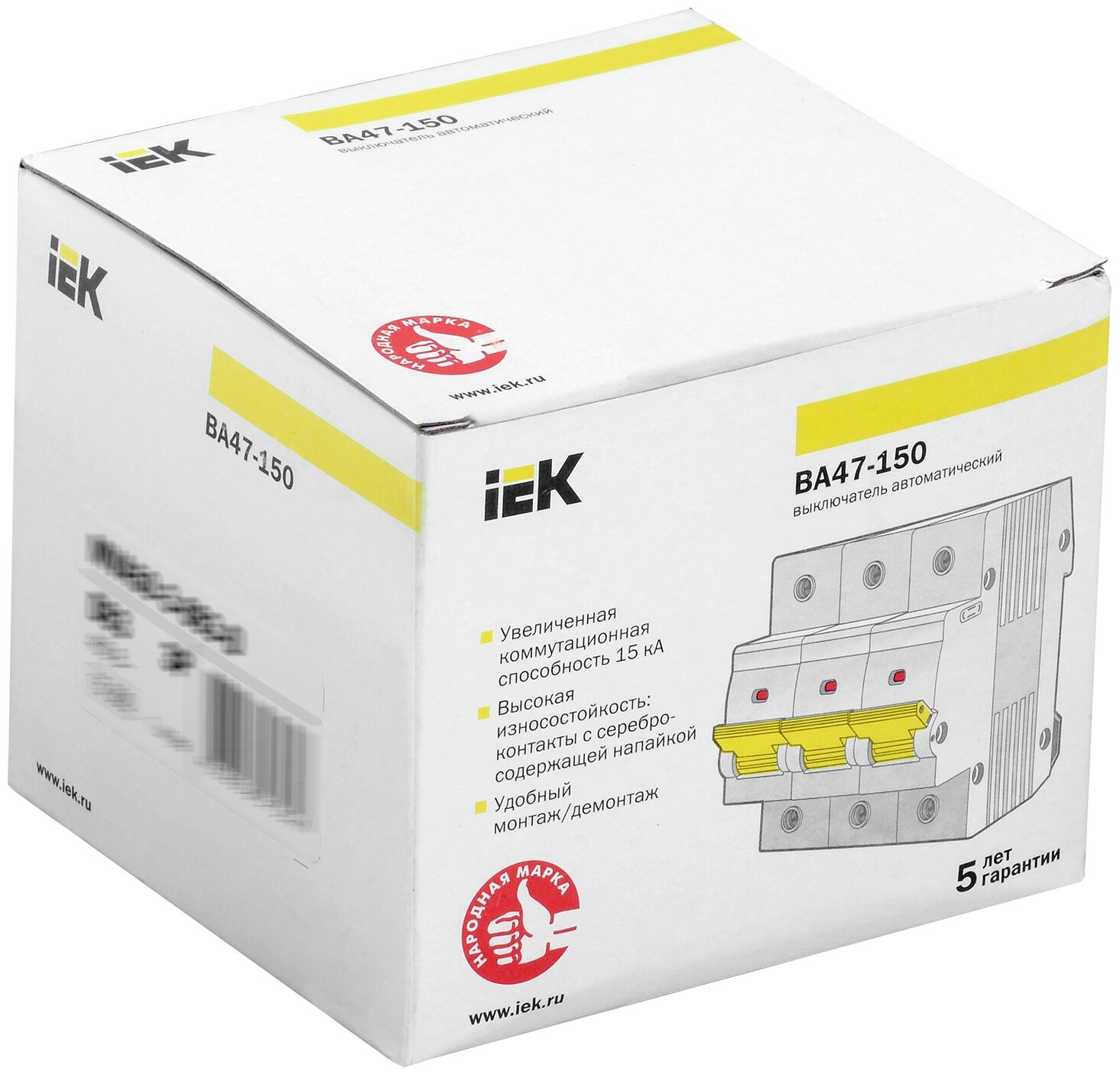 ВА47-150 MVA50-3-125-D Автоматический выключатель трехполюсный 125А (15 кА D) Упаковка (4 шт.) IEK