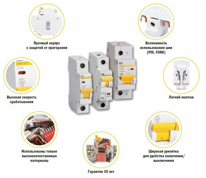 Модульный автоматический выключатель для защиты цепей переменного тока от короткого замыкания и перегрузки. Устанавливается на DIN-рейку.