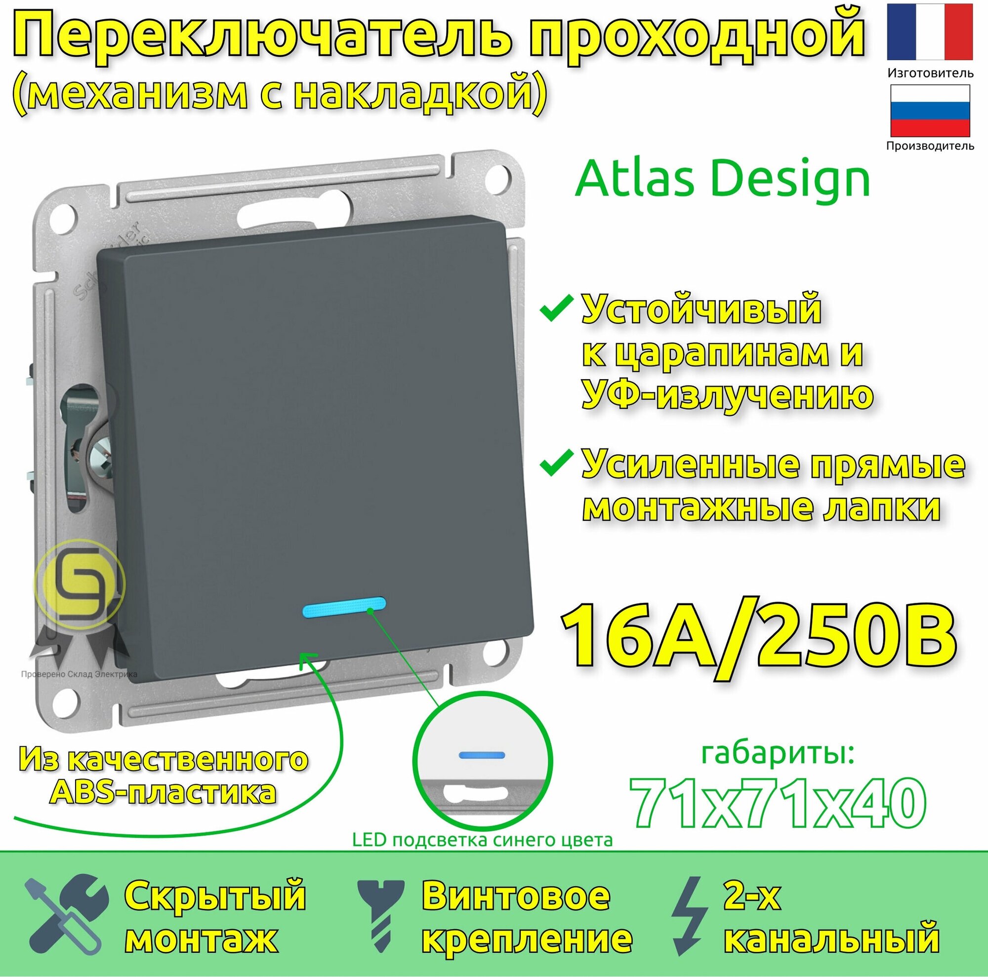 AtlasDesign ATN000763 Переключатель одноклавишный (10 А под рамку подсветка скрытая установка грифель) Упаковка (10 шт.) Schneider Electric