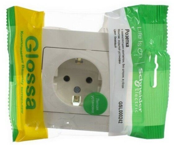 Glossa GSL000242 Розетка с заземляющим контактом (16 А в сборе скрытая установка бежевая) Schneider Electric GSL000242 Glossa