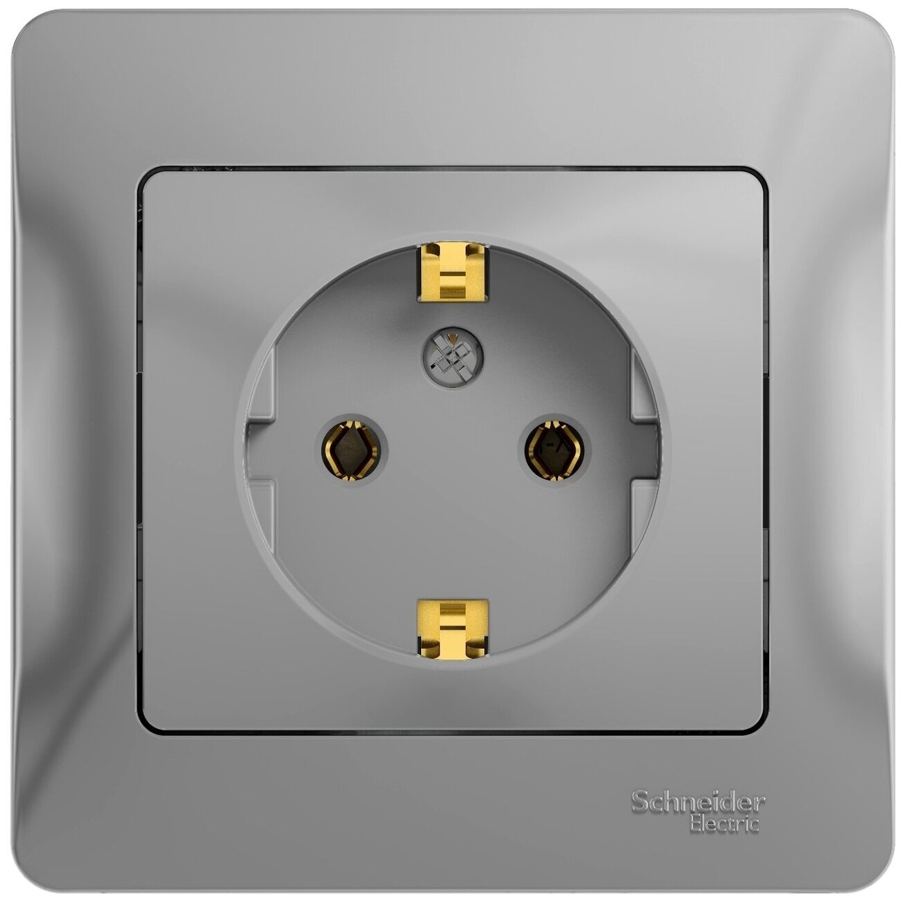 Glossa GSL000342 Розетка с заземляющим контактом (16 А в сборе скрытая установка алюминий) Schneider Electric