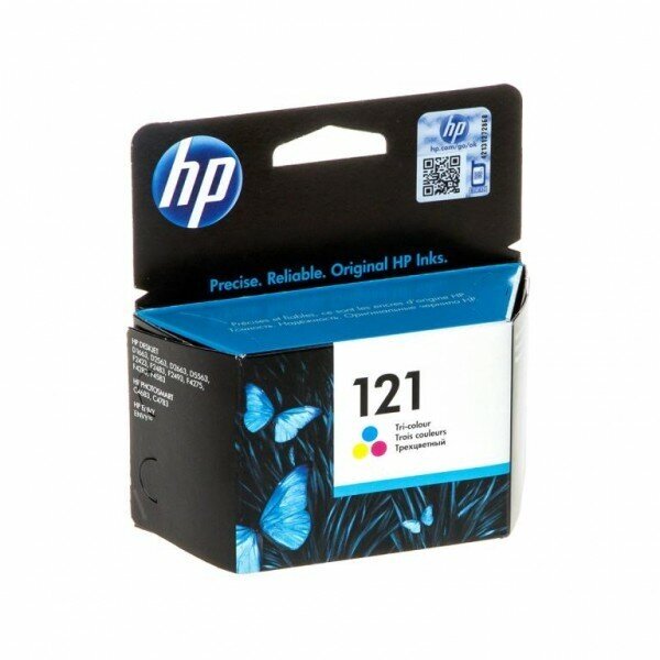 HP 121 CC643HE – это трехцветный картридж для струйного принтера. Цвета, представленные в картридже: небесно-голубой, насыщенный пурпурный и солнечный желтый, – все они выгодно отличаются сочностью и устойчивостью. Данная модель для максимального удобства пользователя оснащена специальным индикатором для отслеживания оставшегося объема чернил. Но, что особенно важно, даже если осталось минимальное количество одного из видов чернил, печать все равно успешно завершится.