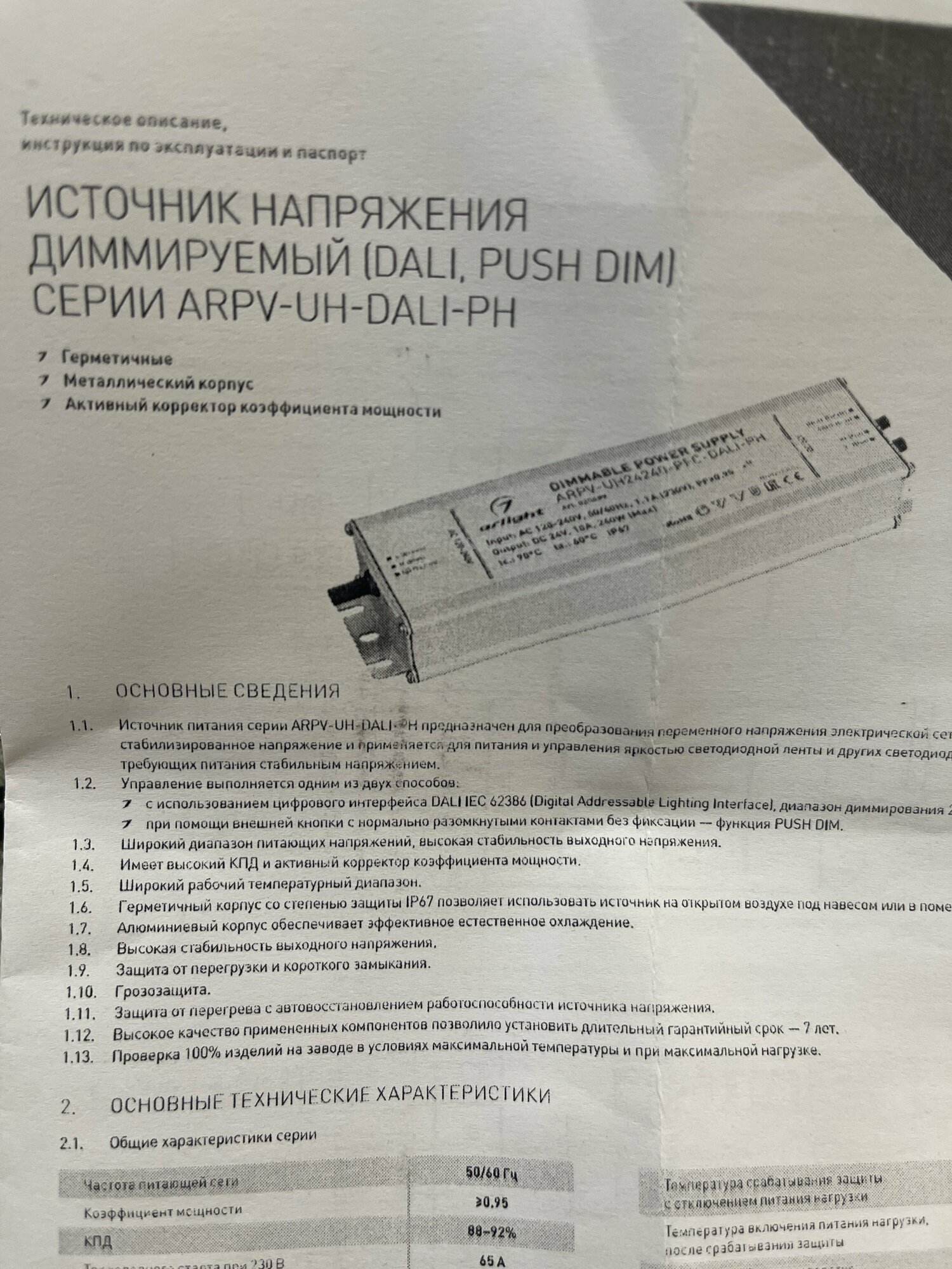 ARPV-UH24240-PFC-DALI-PH Блок питания (24V 10.0A 240W) Arlight 025689