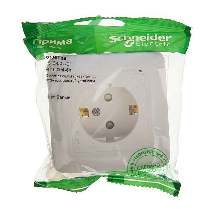 Прима RS16-004-BI Розетка одинарная с заземляющим контактом (16 А IP20 в сборе скрытая установка шторки белая) Schneider Electric