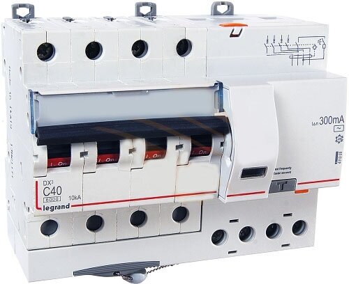 DX3 411211 Автоматический выключатель дифференциального тока четырехполюсный 63А (тип AC 10 кА) Legrand