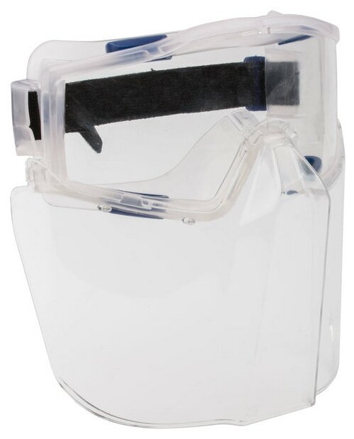 Очки со съемным щитком, для защиты глаз, органов дыхания и обоняния, а так же мягких тканей лица, от воздействия твердых частиц при работе. Поликарбонатное защитное стекло, устойчивое к истиранию и царапанию, обеспечивает панорамный обзор при полном отсутствии искажений. Система вентиляции исключает запотевание защитного стекла. Материал: ПВХ, поликарбонат.