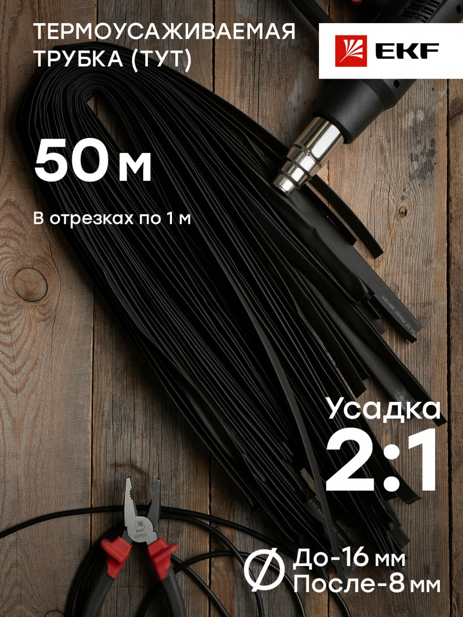 tut-16-b-1m Термоусаживаемая трубка ТУТ 16/8 черная в отрезках по 1м PROxima Упаковка (50 шт.) EKF