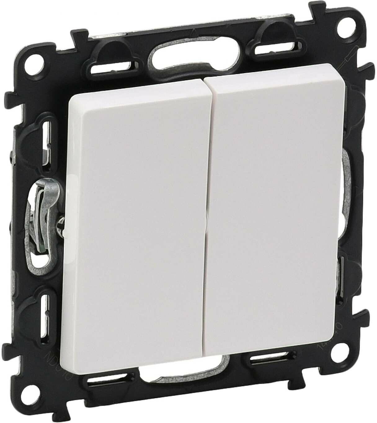 Переключатель Legrand сделан из белого пластика высокого качества. Легко переключать. Как по мне он самый обычный, но хорошо справляется со своими поставленными задачами. Рамка для установки такая, как надо. У него безвинтовые зажимы кабеля. Его необходимо использовать с рамкой Valena Life. Прислали в красивой упаковке. Монтаж прошел успешно. Хорошо украшает комнату. Рекомендую эту модель.