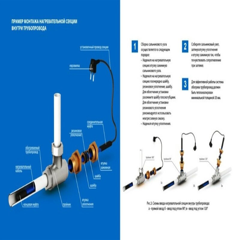 Готовые комплекты серии Plug’n Heat Ensto могут быть установлены как внутри водопровода питьевой воды, так и вне трубы, под теплоизоляцией и оснащены шнуром с евровилкой. Оболочка кабеля изготовлена из полиэтилена и проверена на безопасность пищевых продуктов, что означает, что эти комплекты для защиты труб от замерзания могут быть установлены внутри линии питьевой воды. Греющий кабель проходит внутрь трубы с помощью втулки EFPLV1 / EFPLV1.R.