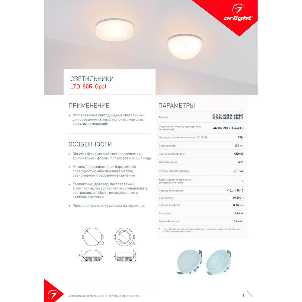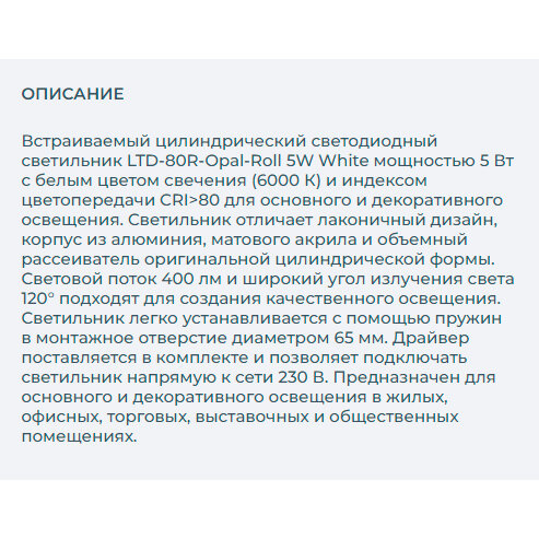 На сегодняшний день товар «020807 LTD-80R-Opal-Roll 5W White Светильник светодиодный Arlight» можно купить с кешбеком в 1 магазине: Яндекс.Маркет