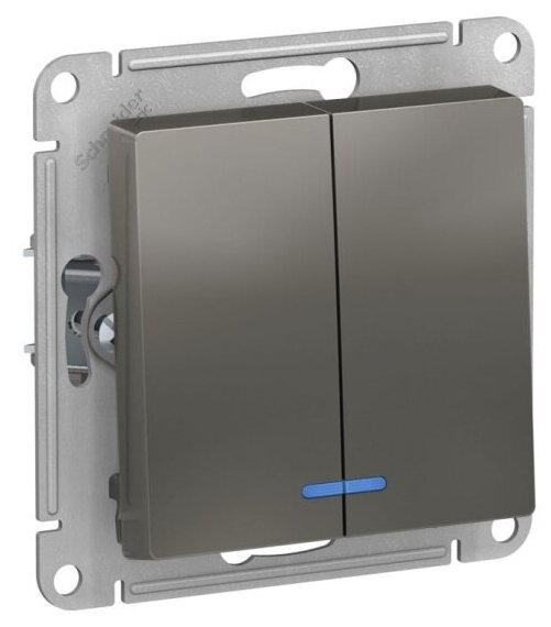 AtlasDesign ATN000953 Выключатель двухклавишный (10 А под рамку подсветка скрытая установка сталь) Упаковка (5 шт.) Schneider Electric ATN000953 AtlasDesign (размер: 71 x 71 x 40мм)