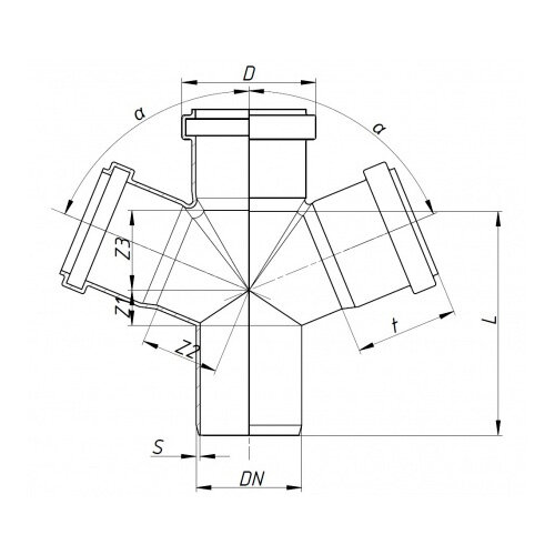Крестовина канализационной системы Ostendorf используется для монтажа двух ответвлений от основных канализационных стояков, транспортирующих хозяйственно-фекальные стоки внутри жилых,