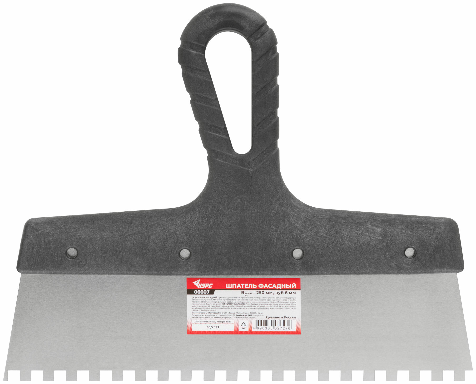 06607 Шпатель фасадный (нержавеющий зубчатый 250 мм / зуб 6 мм) Курс