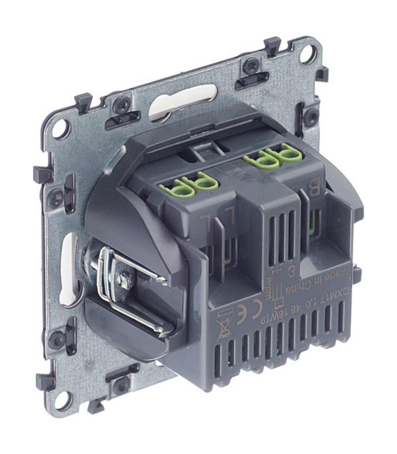 Диммер для резистивной (R), индуктивной (L) или емкостной (C) нагрузки. Возможно комбинирование с одной или несколькими кнопками для выполнения включения/выключения и регулировки освещения. Оснащен функцией памяти уровня: освещение включается на том же уровне яркости, что и было при выключении.