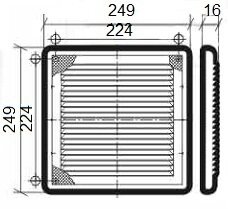 Вентиляционная решетка 2525Р ERA с сеткой является завершающей частью приточно-вытяжной системы вентиляции. Внешние размеры – 250х250 мм (25х25 см). Установочные размеры (расстояния между отверстиями для крепежа) – 225х225 мм (22,5х22,5 см). Конструкция разъемная, оснащена съемной лицевой панелью, что позволяет легко проводить ревизионный осмотр и очищать отверстие и саму пластиковую декоративную решетку. Оснащена защитной сеткой от насекомых. Наклонные жалюзи позволяют скрыть неприглядный выход естественной вытяжки. Изготовлена из высокопрочного, долговечного, стойкого к ультрафиолету abs-пластика. ABS-пластик не подвергается коррозии, не теряет внешний вид при установке во влажных помещениях и имеет идеально ровную глянцевую поверхность. Несет декоративную функцию, защищает от мелкого мусора, способствует циркуляции воздушных потоков в помещении. Используется для настенного или потолочного монтажа в ванной, кухне, туалете. Подходит для внутреннего монтажа на любой тип поверхности. Монтаж осуществляется с помощью саморезов или клея.