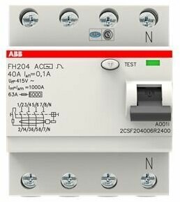 F200 2CSF204006R2400 Выключатель дифференциального тока четырехполюсный 40А 100мА (тип AC) ABB