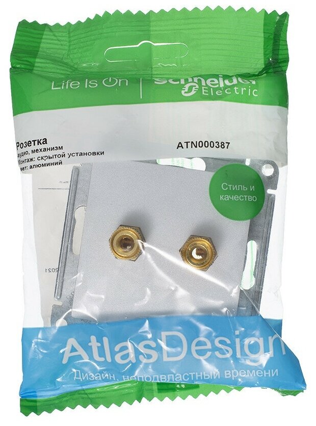 AtlasDesign ATN000387 Розетка аудио (Audio разъем "банан" под рамку скрытая установка алюминий) Упаковка (10 шт.) Schneider Electric