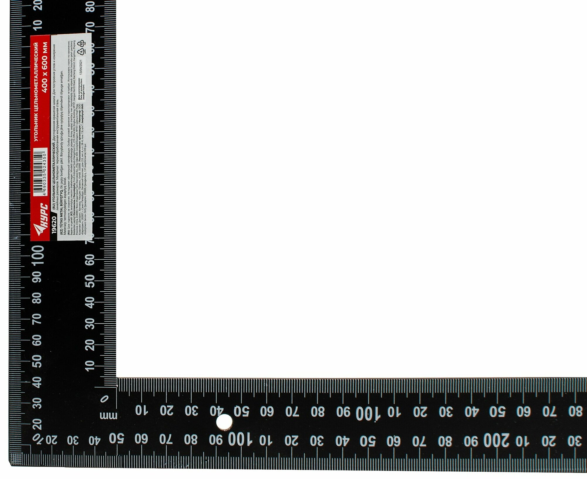 19620 Угольник столярный 400х600 мм (цельно-металлический) Курс (размер: 60 см)
