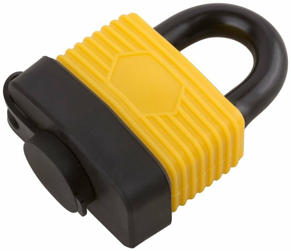 Всепогодный. 3 ключа. Пластиковый чехол на корпусе и специальная заглушка отверстия для ключа предохраняет замок от ржавчины. Упаковка: блистер.