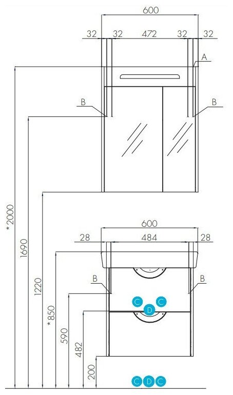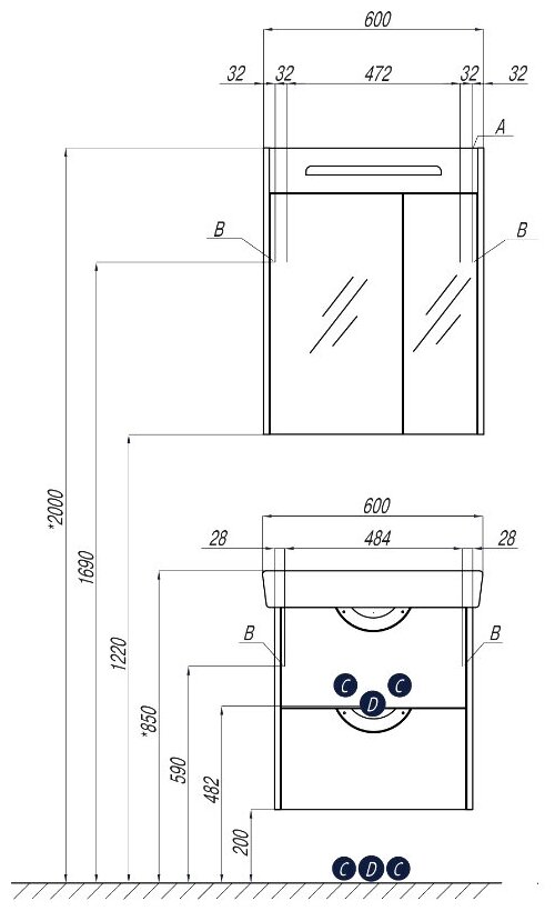 | Шкаф/зеркальный шкаф в комплекте | По желанию |