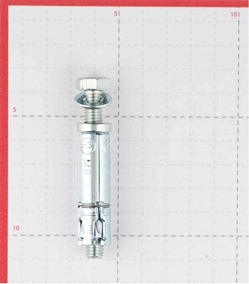 Оригинальный разжимной анкер c болтом. Имеет большую зону расклинивания в 4 стороны, которая обеспечивает превосходный результат при монтаже в материалах более низкого качества, при ремонте старых зданий. Хорошо приспосабливается к отклонениям в размере просверленного отверстия. Применяется для тяжелых и умеренно тяжелых креплений стальных конструкций, различного оборудования, опорных плит, ограждений, перил к таким основаниям, как сжатая зона бетона, природный камень, пустотелый и полнотелый глиняный кирпич.
