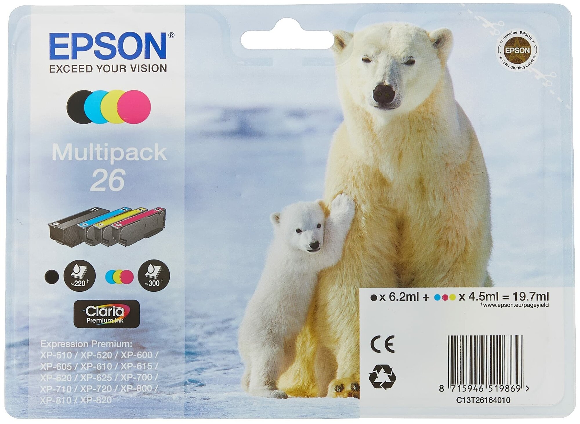 Набор картриджей для струйного принтера Epson MultiPack 26 содержит ёмкости с чернилами четырёх цветов. За счёт этого пользователю не придётся приобретать дополнительные аксессуары перед началом печати.