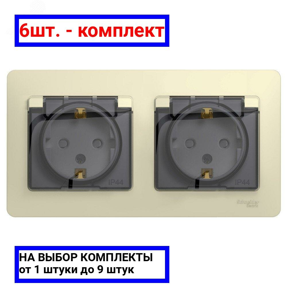 Glossa GSL000247 Розетка двойная с заземляющим контактом и шторками (16 А IP44 крышка в сборе скрытая установка бежевая) Schneider Electric