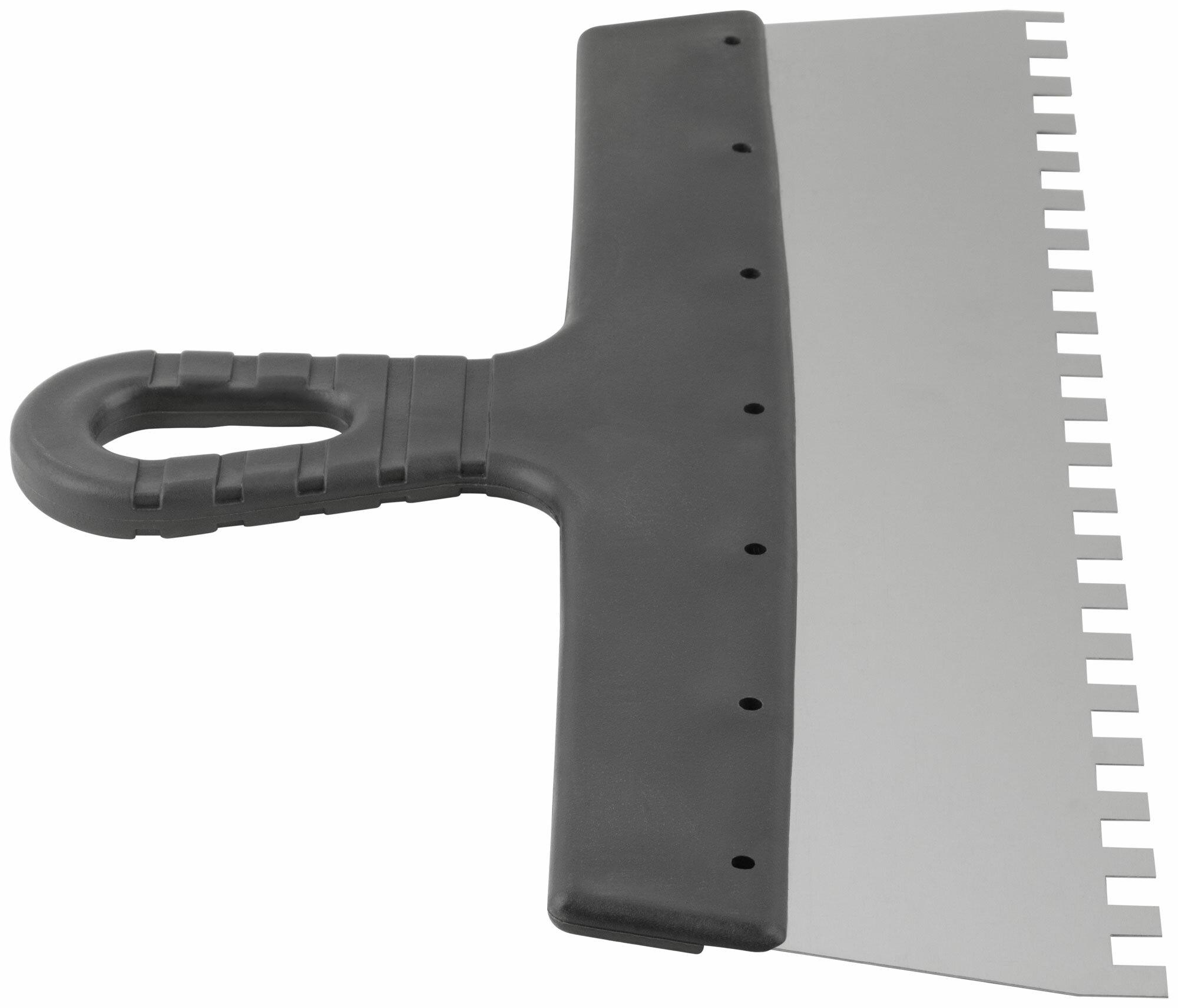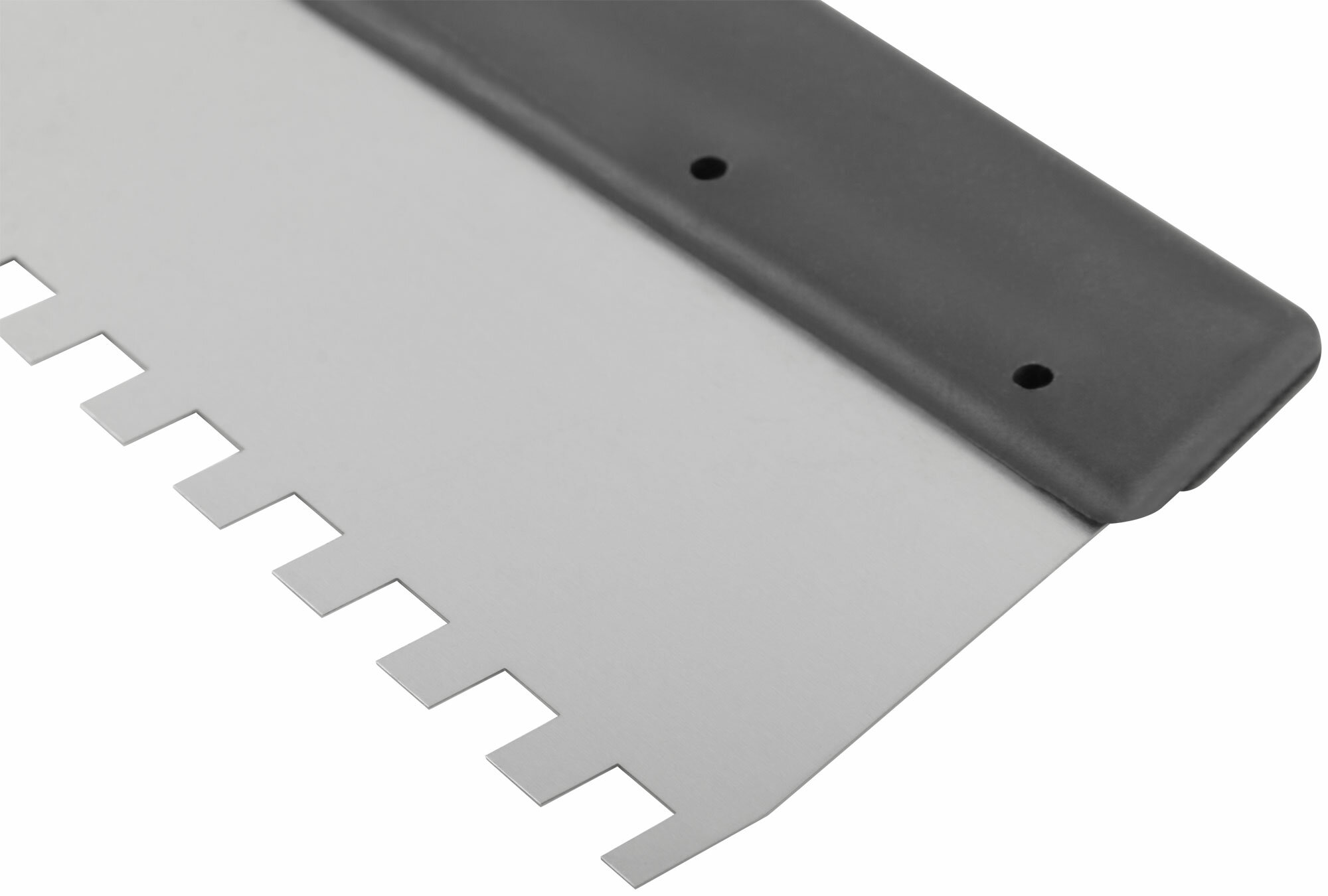 Зубчатый. Для работы на поверхностях большей площади. Материал: нержавеющая сталь, пластиковая ручка.