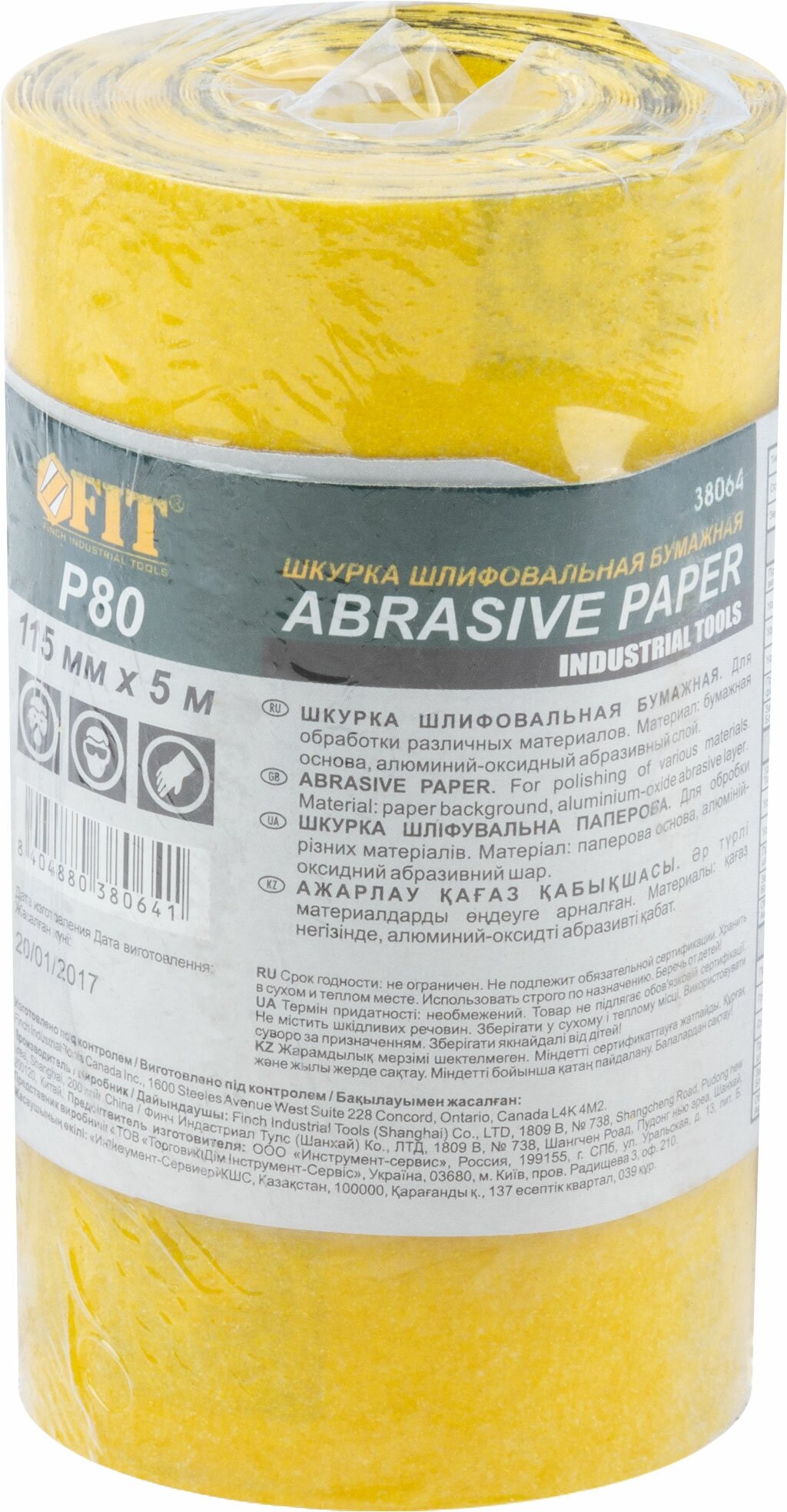 38060 Бумага наждачная в рулонах Р320 (на бумажной основе алюминий-оксидная 1150 мм х 50 м) FIT