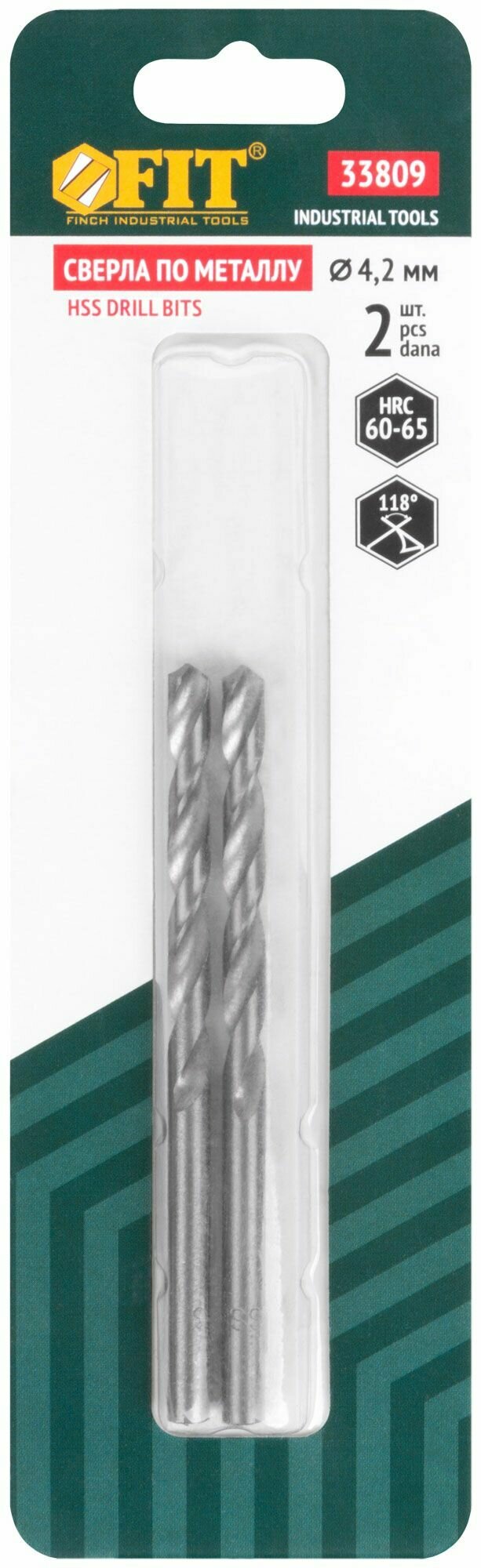 33809 Сверло по металлу 4.2 мм (HSS полированное покрытие в блистере 2 шт) FIT