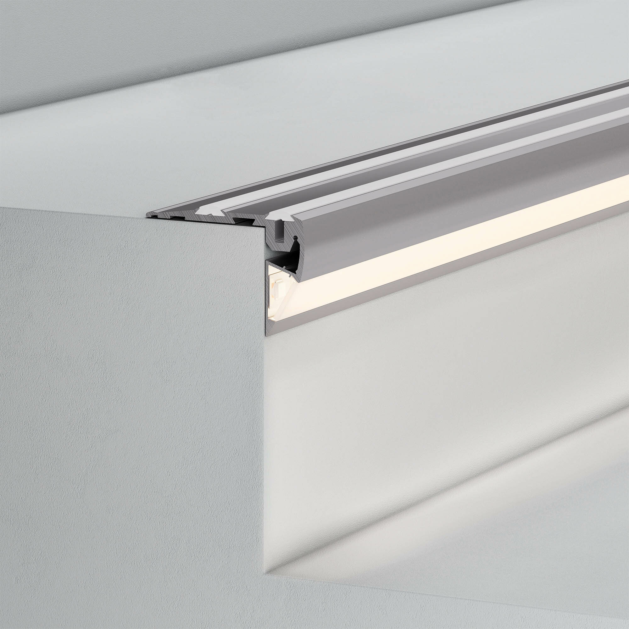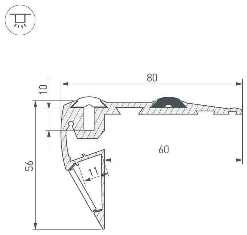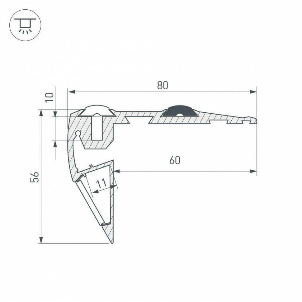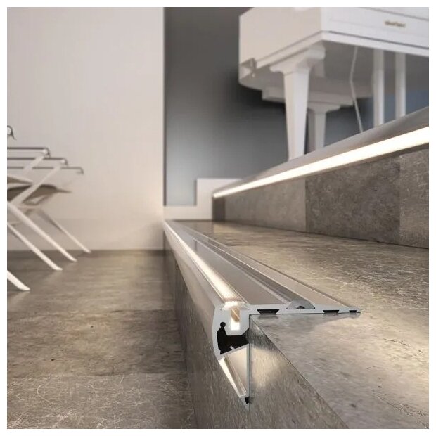 | Дополнительные характеристики | цена указана за 2 метра. продается кратно 2 метрам; алюминиевый анодированный высокопрочный профиль для ступеней, верхняя и фронтальная широкая линия подсветки, антискользящие прокладки в комплекте. размер 80x56x2000мм. Ширина площадок для лент10 мм (верхняя подсветка) и 11 мм (фронтальная подсветка) |