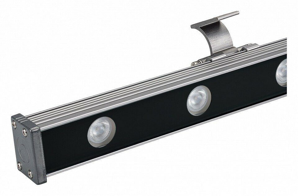 Ультратонкий линейный светодиодный прожектор. Корпус: алюминиевый сплав и армированное стекло. Цвет корпуса серый, степень влагозащиты IP65.