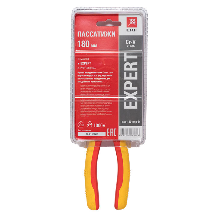 pas-180-exp-in Пассатижи Expert 180 мм 1000В PROxima Упаковка (5 шт.) EKF