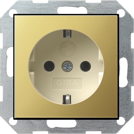 System55 0453614 Розетка с заземляющим контактом (16 А под рамку шторки пиктограмма скрытая установка латунь-кремовый) Gira