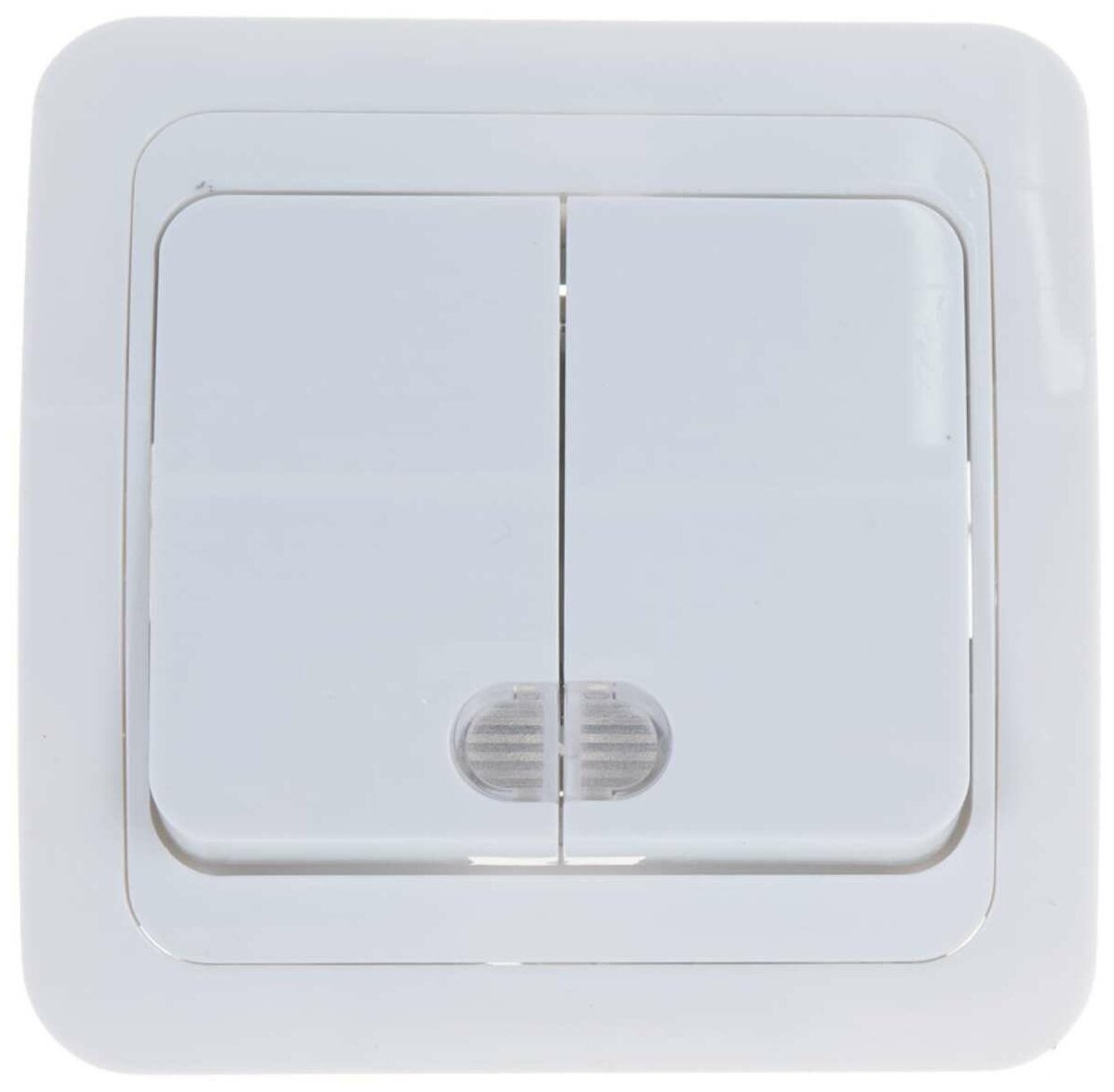 Выключатель двухклавишный с подсветкой (10 А в сборе скрытая установка белый) Universal (84003)