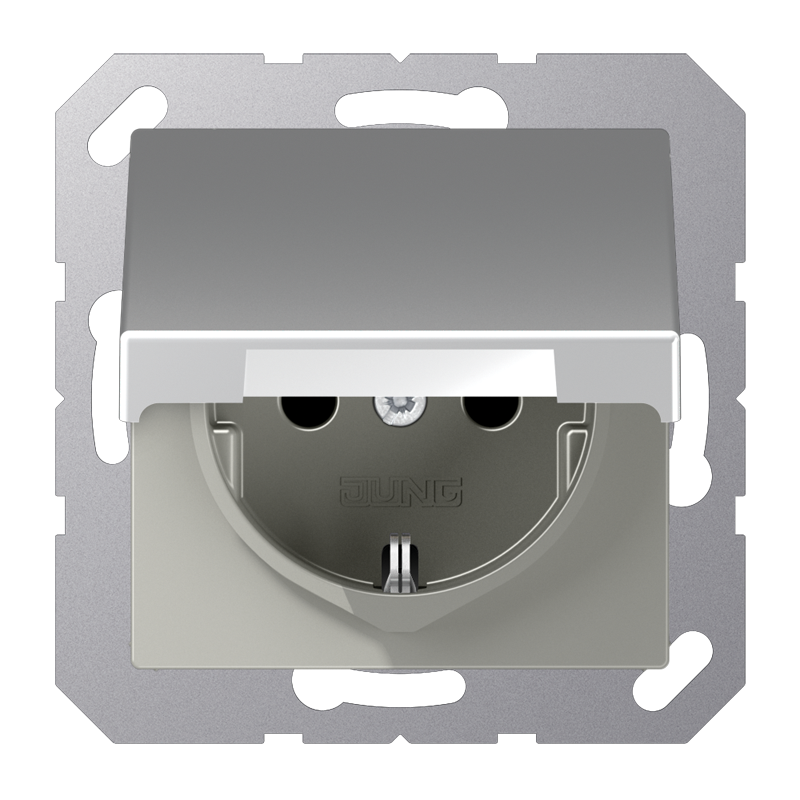 A500 A1520BFKIKLAL Розетка с заземляющим контактом (16 А под рамку крышка шторки скрытая установка алюминий) JUNG