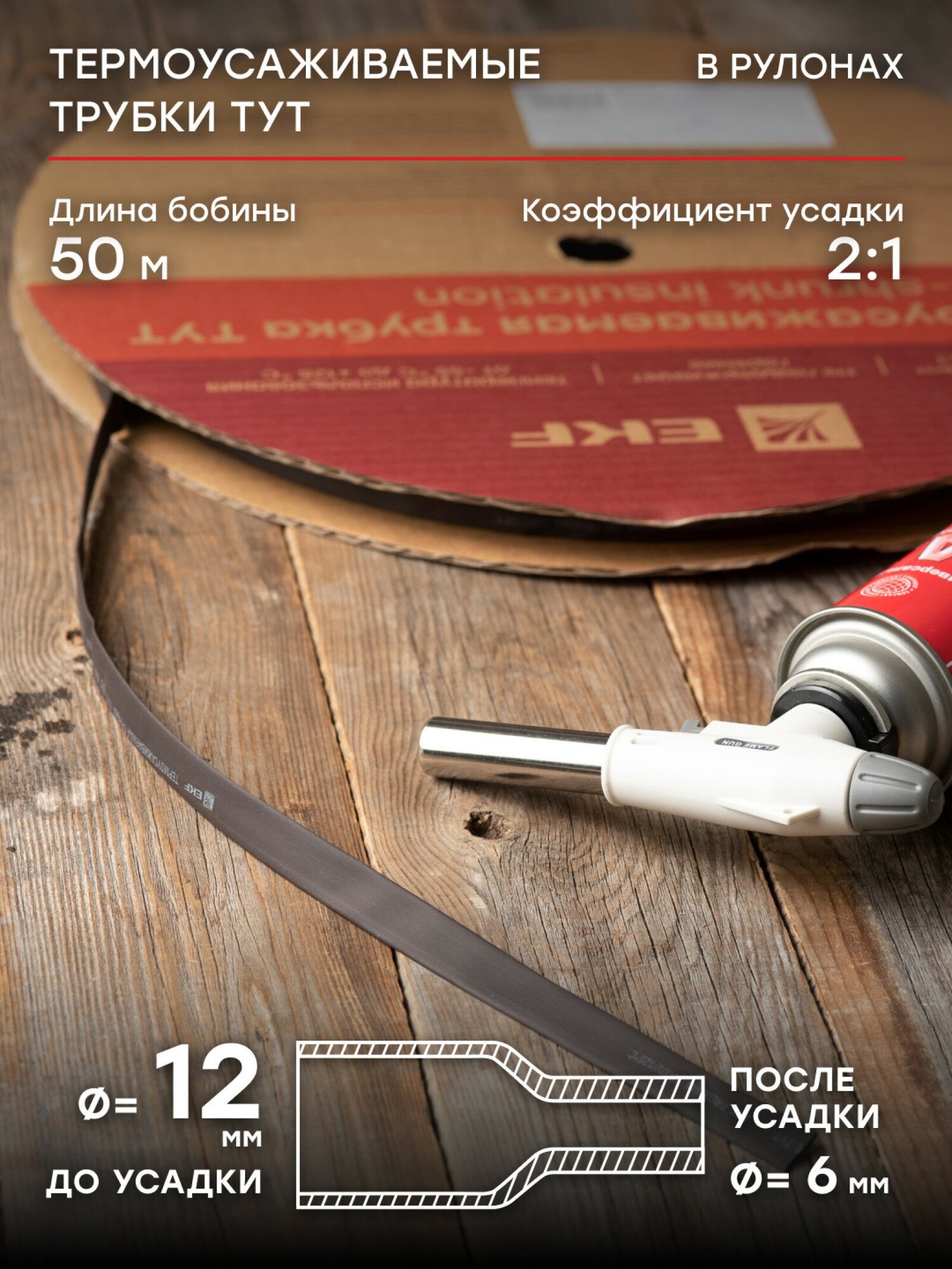 tut-12-b Термоусаживаемая трубка ТУТ 12/6 черная рулон PROxima Упаковка (100 шт.) EKF