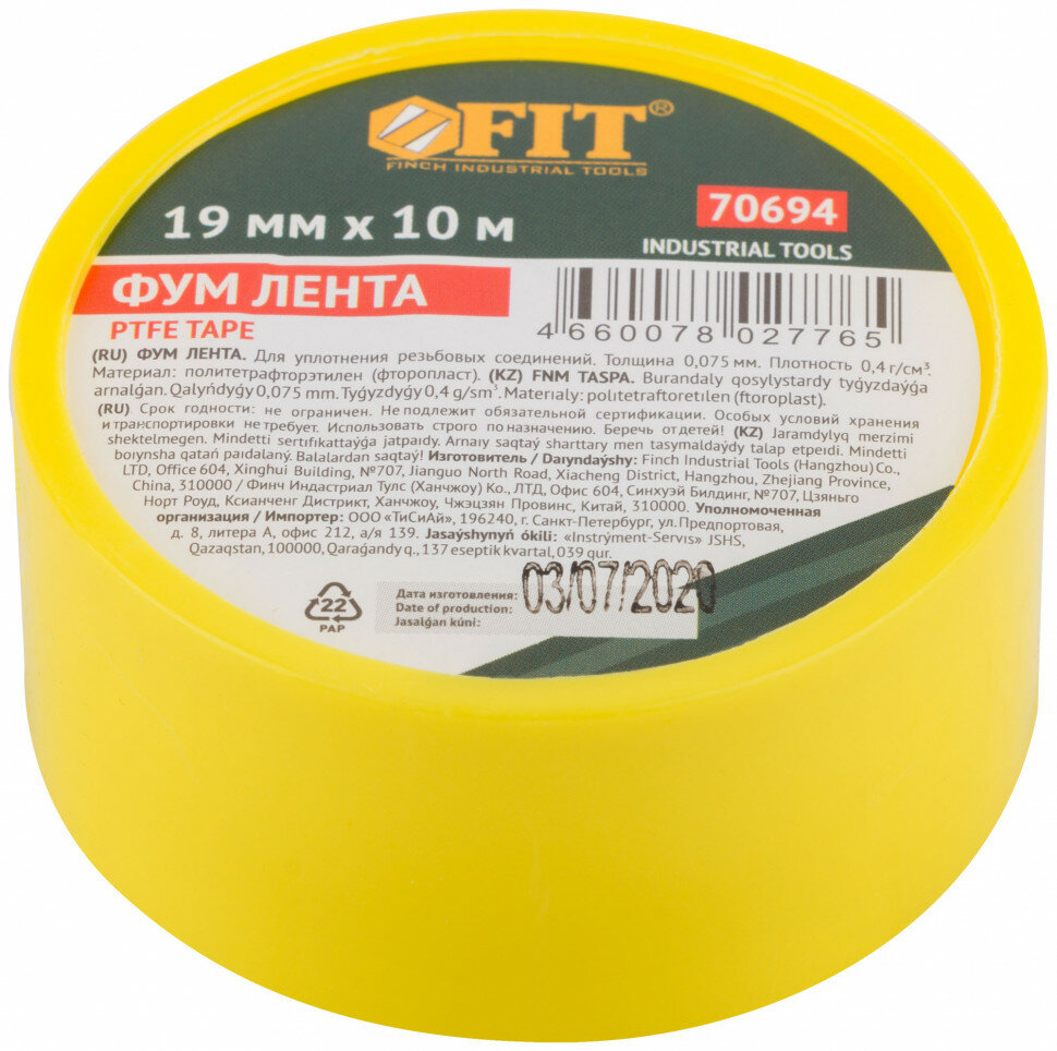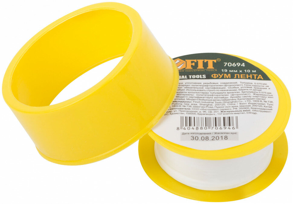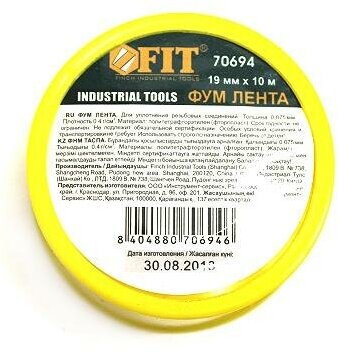 70694 ФУМ Лента 19 мм x 10 м (плотность 0.40 г/см³ толщина 0.075 мм) FIT