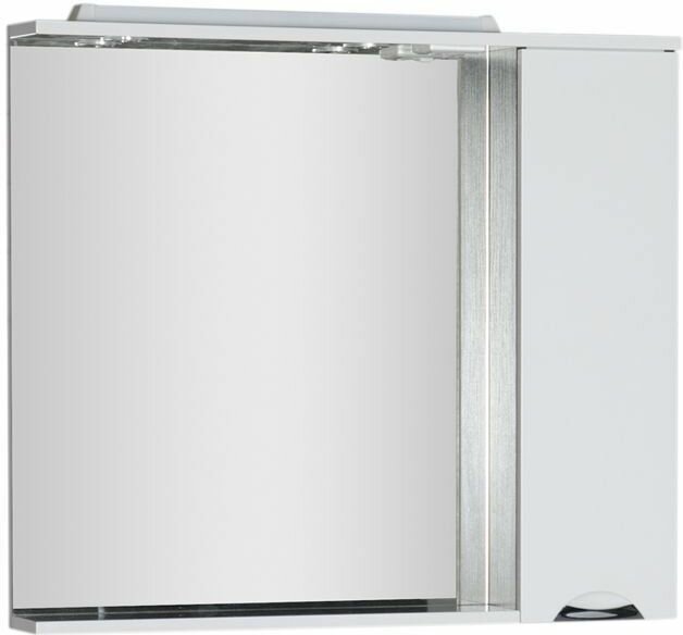 Практичный элемент ванной комнаты – стильное зеркало с боковым шкафчиком и подсветкой украсит вашу ванную комнату, сделает ежедневные гигиенические процедуры более комфортными. Выполненное в нейтральном, спокойном стиле это зеркало отлично впишется в интерьер, дизайн здесь прямое отражение функциональности – удобный шкафчик под правую руку сохранит от пыли и влаги ваши принадлежности, аккуратная открытая полочка обеспечит легкий доступ к часто используемым средствам, а встроенная подсветка избавит вас от необходимости покупать дополнительные светильники.