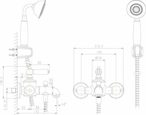 Однорычажный настенный смеситель для ванны и душа станет прекрасной парой к кухонному крану из этой же серии. Выполненный в ретро-стиле, своим внешним видом он напоминает о том времени, когда все вещи создавались качественными, добротными, с внимательным подходом к каждой детали. Корпус смесителя изготовлен из сантехнической латуни, а зеркальное хромированное покрытие долгие годы будет оставаться таким же сияющим, как в день покупки.