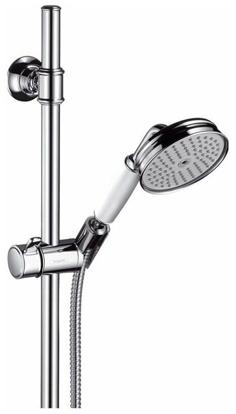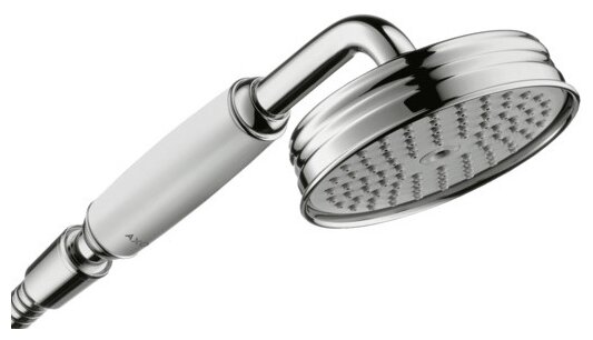 Изысканная душевая лейка Axor Montreux соединяет ретро-дизайн с удобством современных разработок. Не иначе создателям такого ручного душа с белой рукояткой вдохновение навеяла ностальгия по классике. Диск душа создает дождевую обогащенную воздухом струю по технологии RainAir. Лейка снабжена системой защиты от известкового налета.