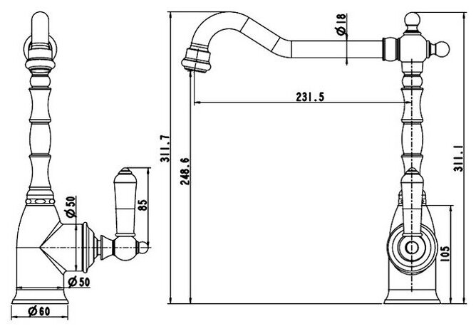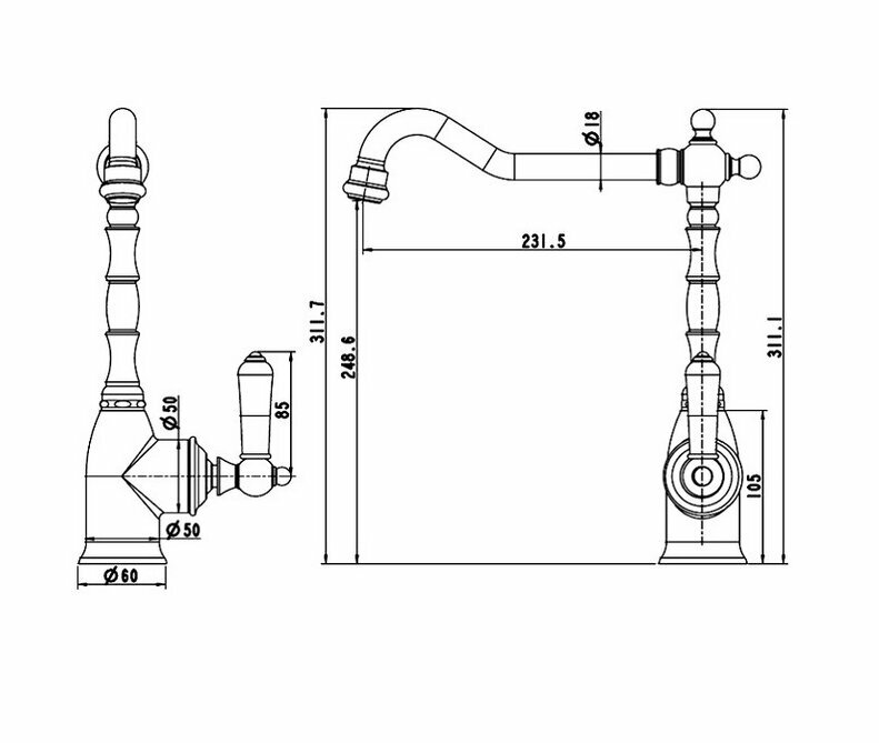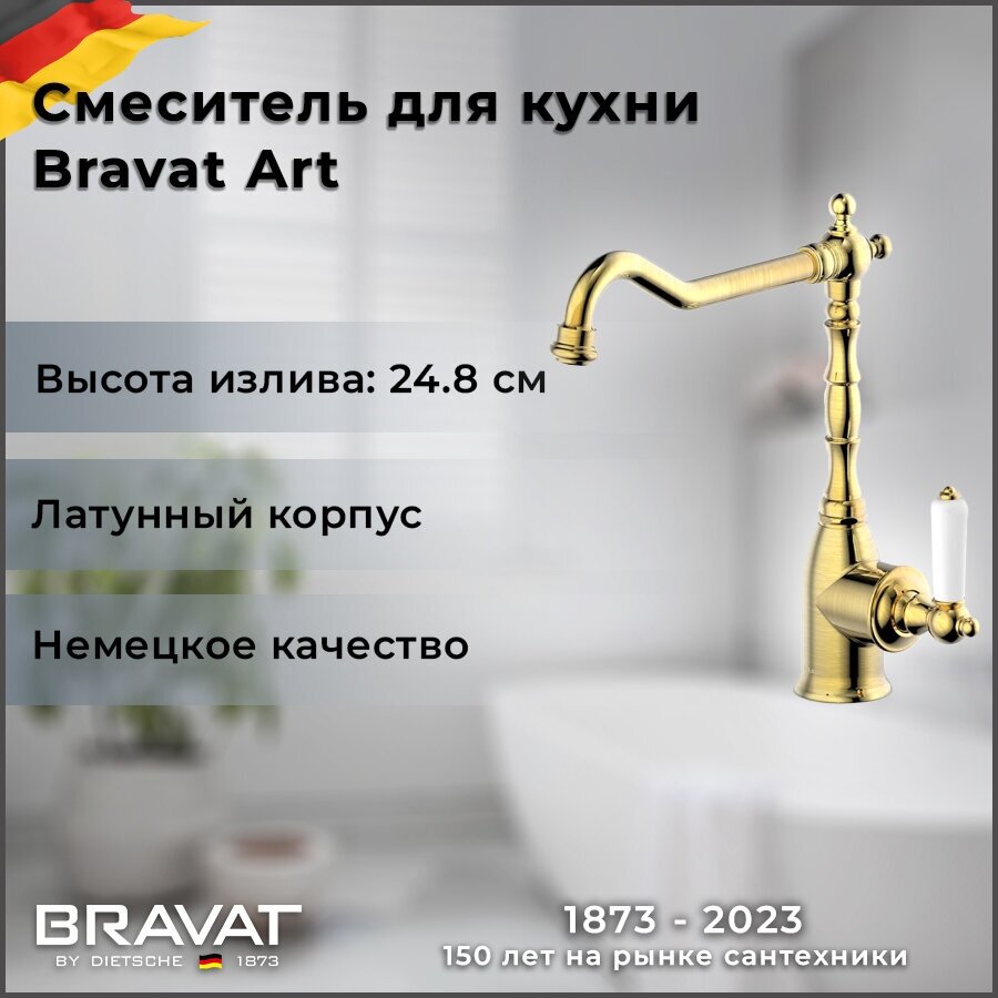 Высокий смеситель немецкого производителя Bravat создан для поклонников неординарных вещей. Удивительная многоэлементная конструкция выполнена в стиле ретро, при этом смотрится невероятно свежо и оригинально, обилие деталей причудливых форм притягивает взгляд, заставляет снова и снова удивляться безграничной фантазии дизайнеров. Поворотный механизм излива особенно удобен при мытье крупной посуды, однозахватный рычаг управления позволяет избежать лишних манипуляций ведь на кухне часто приходится действовать быстро.