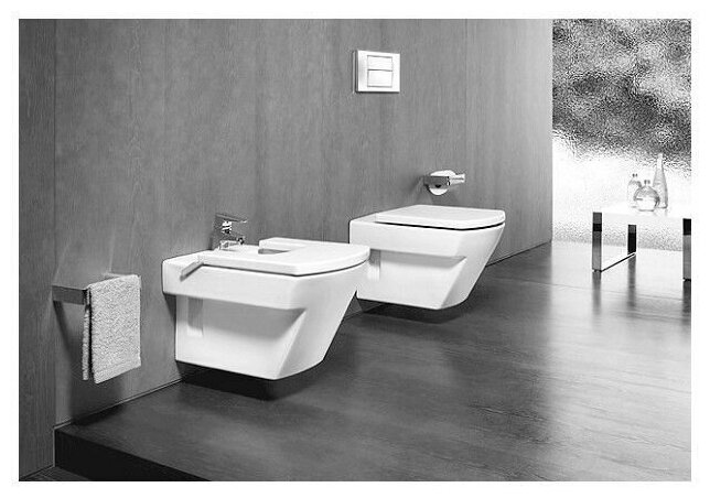 Подвесное биде Roca Hall прямоугольной формы. Крышка и смеситель приобретаются отдельно.Дизайн коллекции Hall идеален для сложных пространств, прекрасно адаптируется под практически невозможные помещения и отвечает требованиям современных интерьеров, обладая прекрасной приспосабливаемостью, но не в ущерб самому дизайну.