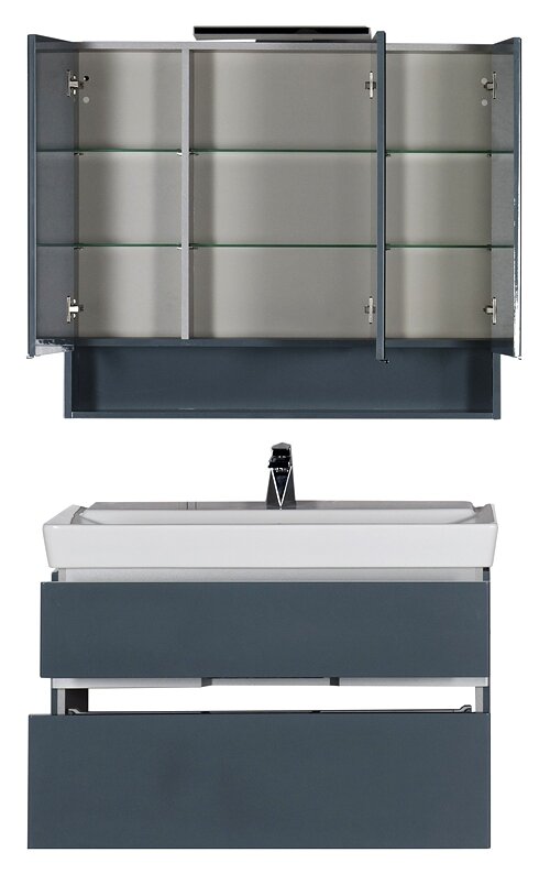 Зеркало: Aquanet Виго 100, цвет сине-серый, 3 распашные дверцы (183359)