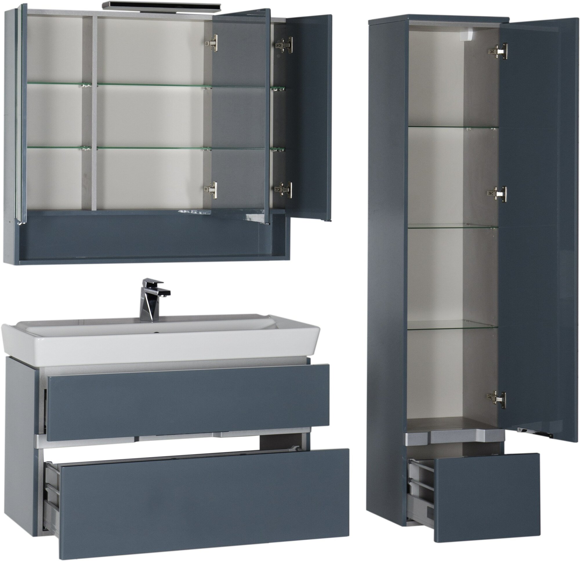 Зеркало-шкаф Aquanet Виго 100 сине-серый