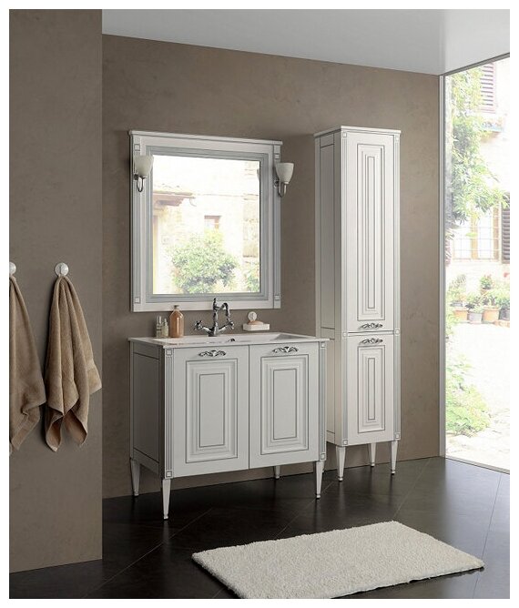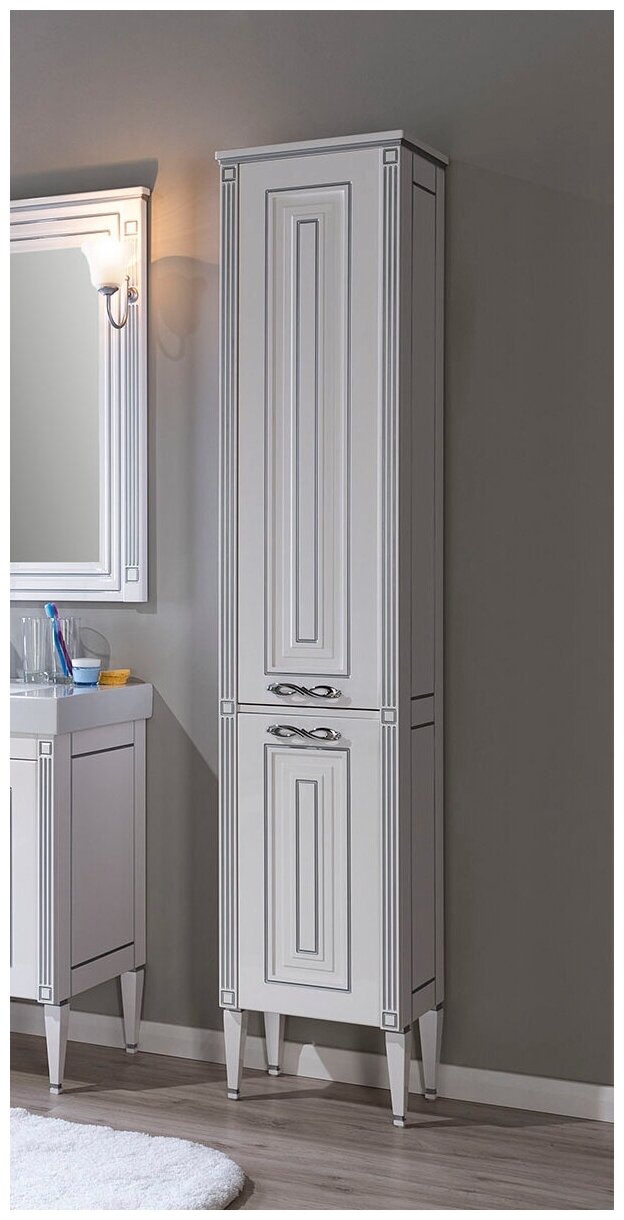 Пенал: Aquanet Паола 40, цвет белый/серебро, 2 распашные дверцы (181770)