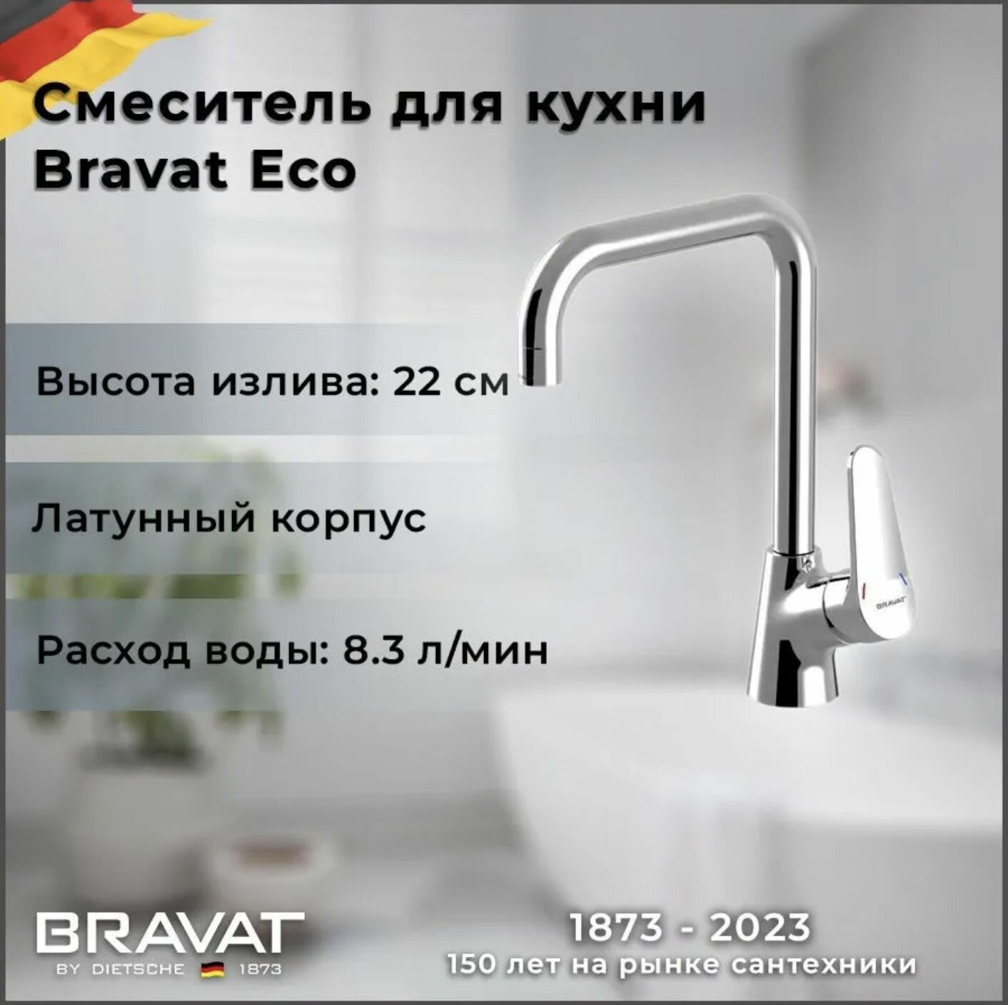 Смеситель для кухни с высоким поворотным изливом, Bravat Eco F1111147C-1. Для коллекции смесителей Bravat Eco выбрано своеобразное дизайнерское решение зеркальная хромированная поверхность с множеством разнонаправленных граней выглядит невероятно эффектно и динамично.