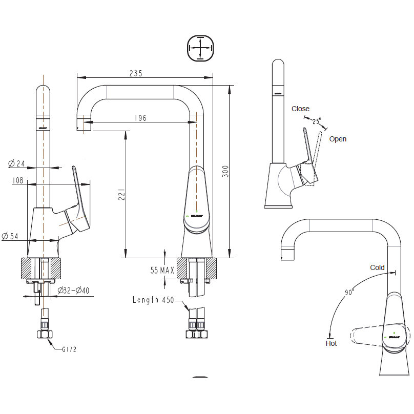 | Высота излива_диапазоны | От 19,8 до 25 см |